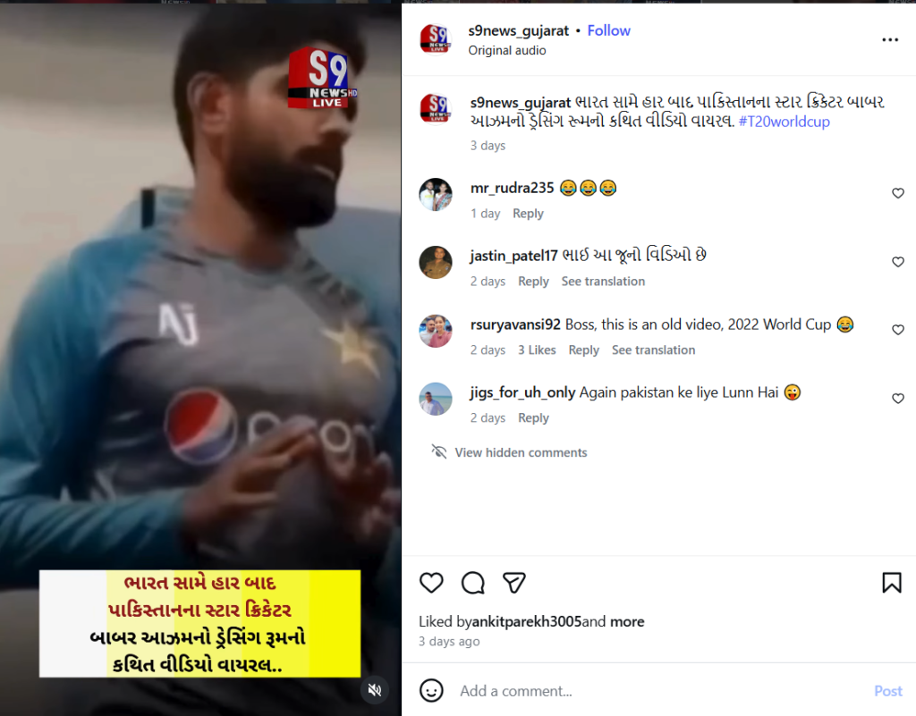 Title:બાબર આઝમનો 5 વર્ષ જૂનો વીડિયો હાલના સંદર્ભમાં શેર કરવામાં આવી રહ્યો… જાણો શું છે સત્ય….