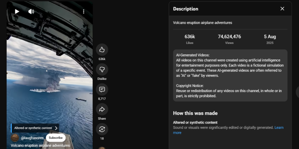 આ ચેનલ પરની વધુ માહિતી સર્ચ કરતાં અમને એક વિવરણ પ્રાપ્ત થયું હતું. જેમાં એવી માહિતી આપવામાં આવી હતી કે, આ ચેનલ પરના બધા વીડિયો ફક્ત મનોરંજનના હેતુ માટે AIનો ઉપયોગ કરીને બનાવવામાં આવ્યા છે. દરેક વીડિયો ચોક્કસ ઘટનાનું કાલ્પનિક અનુકરણ છે. આ AI દ્વારા જનરેટ કરાયેલ વીડિયોને દર્શકો ઘણીવાર “AI” અથવા “Fake” તરીકે ઓળખાવે છે.