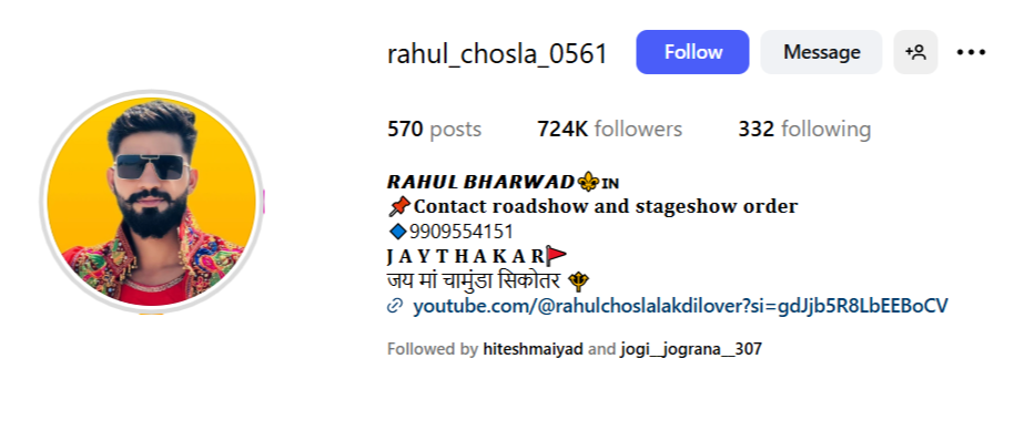 તેમજ વધુ માહિતી માટે અમે તેની પ્રોફાઈલ ચેક કરી હતી. જેની સાથે માહિતી આપવામાં આવી હતી કે, “આ વ્યક્તિનું નામ રાહુલ ભરવાડ છે. તે એક કન્ટેન્ટ ક્રિએટર છે જે આ પ્રકારના સ્ટંટના વીડિયો બનાવે છે અને પોસ્ટ કરે છે અને આ પ્રકારના શો પણ કરે છે.”