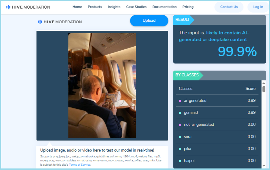 જ્યારે અમે AI ઓળખ વેબસાઇટ Hive Moderation પર આ ફોટો તપાસી, ત્યારે અમને ખ્યાલ આવ્યો કે 99.9% શક્યતા છે કે આ છબી AI દ્વારા બનાવવામાં આવી હોય.