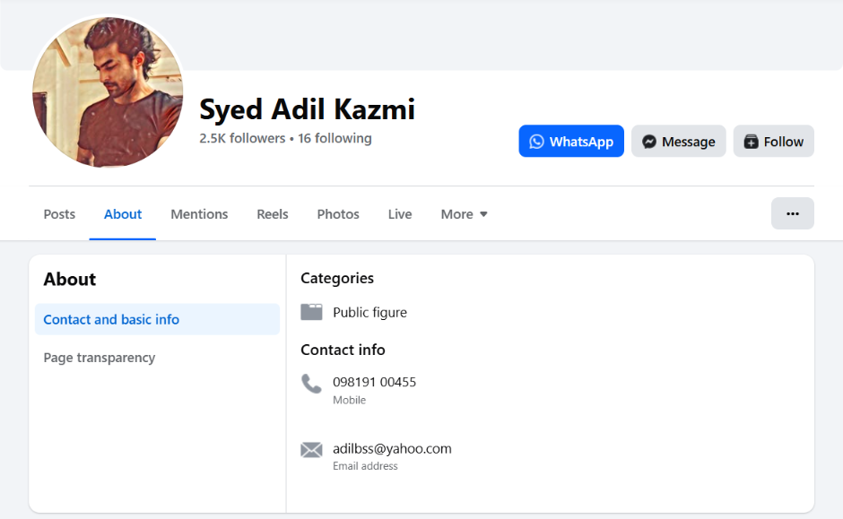ઉપરોક્ત વીડિયોના કેપ્શનમાં અમને syed Adil kazmi લખેલું જોવા મળ્યું હતું. આ નામને અમે ફેસબુક પર સર્ચ કરતાં અમને આ જ નામની એક પ્રોફાઈલ પ્રાપ્ત થઈ હતી. જેમાં આ વ્યક્તિનો મોબાઈલ નંબર પણ આપવામાં આવ્યો હતો.