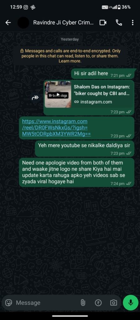 અમારી વધુ તપાસમાં અમે આ નંબર પર સંપર્ક કરતાં સૈયદ આદિલ કાઝમીએ અમને જણાવ્યું હતું કે, “હું એક એક્ટર અને સ્ટંટમેન છું. આ વીડિયો કોઈ વાસ્તવિક ઘટનાનો નહીં પરંતુ એક તેલુગુ હોરર ફિલ્મ Tappinchukoleruના દ્રશ્યનો છે. મેં આ અંગે સાયબર ક્રાઈમમાં ફરિયાદ પણ કરી છે. જેનો એક સ્ક્રીનશોટ પણ અમને મોકલ્યો હતો.”