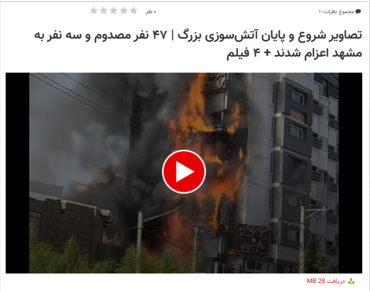 ત્યાર બાદ અમે પોસ્ટમાં મૂકવામાં આવેલા વડિયોનો એક સ્ક્રીનશોટ લઈ ગુગલ રિવર્સ ઈમેજનો સહારો લઈને સર્ચ કરતાં અમને પોસ્ટમાં મૂકવામાં આવેલા આ જ વીડિયો સાથેના સમાચાર hamshahrionline.ir દ્વારા પ્રસારિત કરવામાં આવ્યા હતા. આ વીડિયોમાં એવી માહિતી આપવામાં આવી હતી કે, ઈરાનમાં આવેલી Sabzevar Cement Buildingમાં આગ લાગતાં 47 જેટલા લોકોના મોત થયા હતા.