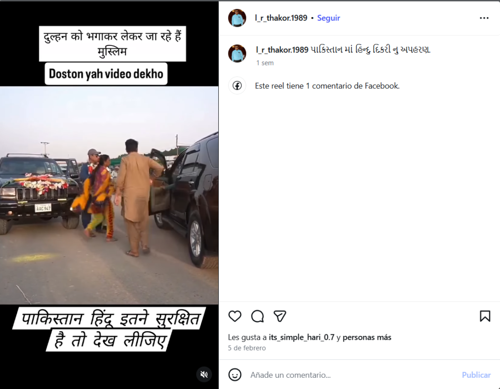 સોશિયલ મીડિયા યુઝર્સ દ્વારા તારીખ 06 ફેબ્રુઆરી 2026ના એક પોસ્ટ શેર કરવામાં આવી હતી. આ પોસ્ટમાં દાવો કરવામાં આવ્યો હતો કે, “પાકિસ્તાનમાં હિન્દુ નવપરણિત મહિલાના અપહરણની આ વાસ્તવિક ઘટના છે.”