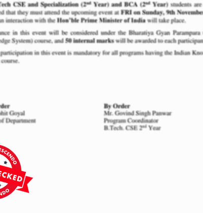 તાજેતરમાં સોશિયલ મીડિયા પર અભિનેત્રી ઐશ્વર્યા રાયનો વડાપ્રધાન નરેન્દ્ર મોદીને ભારત-પાકિસ્તાન યુદ્ધમાં થયેલા નુકશાન અંગેના સવાલ કરતો એક વીડિયો વાયરલ થઈ રહ્યો છે જેની સાથે એવો દાવો કરવામાં આવી રહ્યો છે કે, અભિનેત્રી ઐશ્વર્યા રાય વડાપ્રધાન નરેન્દ્ર મોદીને ભારત-પાકિસ્તાન યુદ્ધમાં ભારતને થયેલા નુકશાન અંગેના સવાલ કરી રહી છે તેનો આ વીડિયો છે. પરંતુ ફેક્ટ ક્રેસેન્ડોની […]