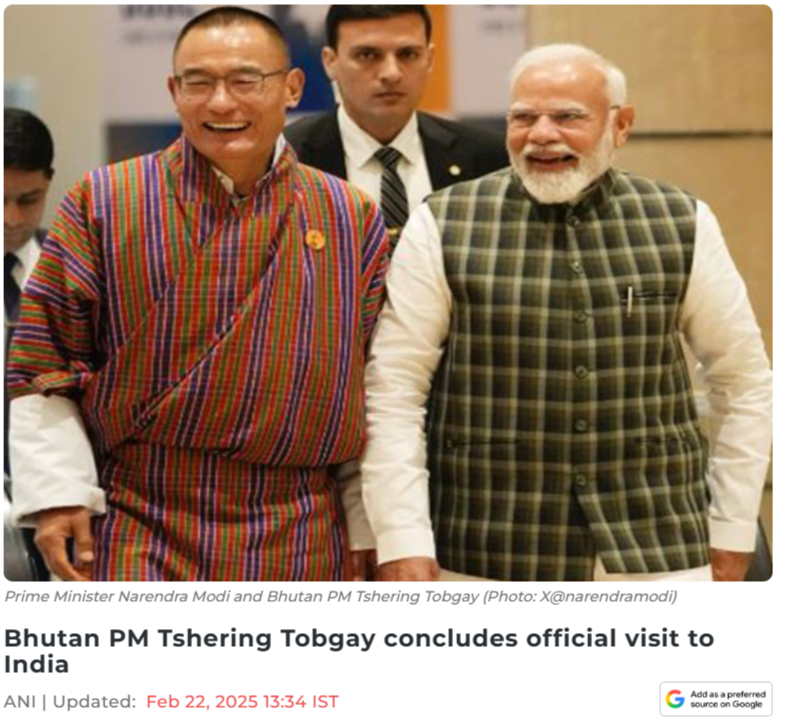ઉપરોક્ત પરિણામો પરથી અમને એએનઆઈની વેબસાઈટ પર 22 ફેબ્રુઆરી 2025ના પ્રસારિત એક અહેવાલ પ્રાપ્ત થયો હતો જેમાં આ ફોટો ઉપલબ્ધ હતો. જેની સાથે માહિતી આપવામાં આવી હતી કે, “ભૂટાનના પીએમ દાશો ત્શેરિંગ તોબગેએ 20-21 ફેબ્રુઆરી દરમિયાન ભારતની તેમની સત્તાવાર મુલાકાત પૂર્ણ કરી, જે દરમિયાન તેમણે સ્કૂલ ઓફ અલ્ટીમેટ લીડરશીપ (આત્મા) ના ઉદ્ઘાટન લીડરશીપ કોન્ક્લેવમાં ભાગ લીધો. જેનું ઉદ્ઘાટન પીએમ નરેન્દ્ર મોદી દ્વારા કરવામાં આવ્યું હતું.”