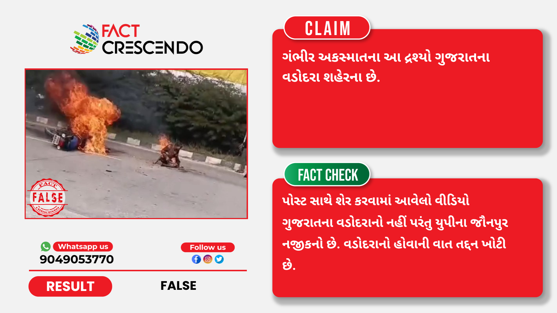 પોસ્ટ સાથે શેર કરવામાં આવેલો વીડિયો ગુજરાતના વડોદરાનો નહીં પરંતુ યુપીના જૌનપુર નજીકનો છે. વડોદરાનો હોવાની વાત તદ્દન ખોટી છે.