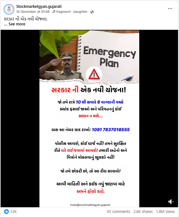 Title:શું ખરેખર મહિલાઓની ફ્રી રાઈડ માટે સરકાર દ્વારા નંબર બહાર પાડવામાં આવ્યો…? જાણો શું છે સત્ય….