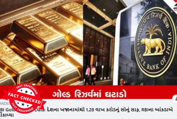 તાજેતરમાં સોશિયલ મીડિયા પર સંદેશનો એક સમાચાર અહેવાલ વાયરલ થઈ રહ્યો છે. આ અહેવાલ સાથેના લખાણમાં એવો દાવો કરવામાં આવી રહ્યો છે કે, દેશના ખજાનામાંથી 1.28 લાખ કરોડનું સોનુ ગાયબ થયું છે પરંતુ ફેક્ટ ક્રેસેન્ડોની પડતાલમાં આ દાવો ખોટો અને ભ્રામક હોવાનું સાબિત થાય છે કારણ કે, પોસ્ટમાં દેશના ખજાનામાંથી 1.28 લાખ કરોડનું સોનુ ગાયબ થવા અંગેની જે માહિતી મૂકવામાં આવી છે એ તદ્દન ખોટી છે કારણ કે, આરબીઆઈના ડેટા અનુસાર, સોનાના ભંડારના મૂલ્યમાં રેકોર્ડ ઘટાડો થયો છે, પરંતુ સોનાના ભંડારમાંથી કોઈ સોનું ગાયબ થયું નથી. સરકાર દ્વારા તેની સ્પષ્ટતા કરવામાં આવી છે.આ માહિતી સોશિયલ મીડિયા પર લોકોને ગેરમાર્ગે દોરવા વાયરલ કરવામાં આવી રહી છે.