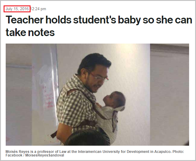 Moisés Reyes Sandoval દ્વારા 6 જુલાઈ, 2016ના રોજ આ ફોટો ફેસબુક પર શેર કરવામાં આવ્યો હતો અને કેપ્શનમાં લખ્યું હતુ કે, “બાળકની જવાબદારી હોવા છતાં મારી વિદ્યાર્થીની ભણવાનું ચાલુ રાખે તે ખૂબ જ ગૌરવની વાત છે. મેં ફક્ત તેણીને થોડી મદદ કરી.”
