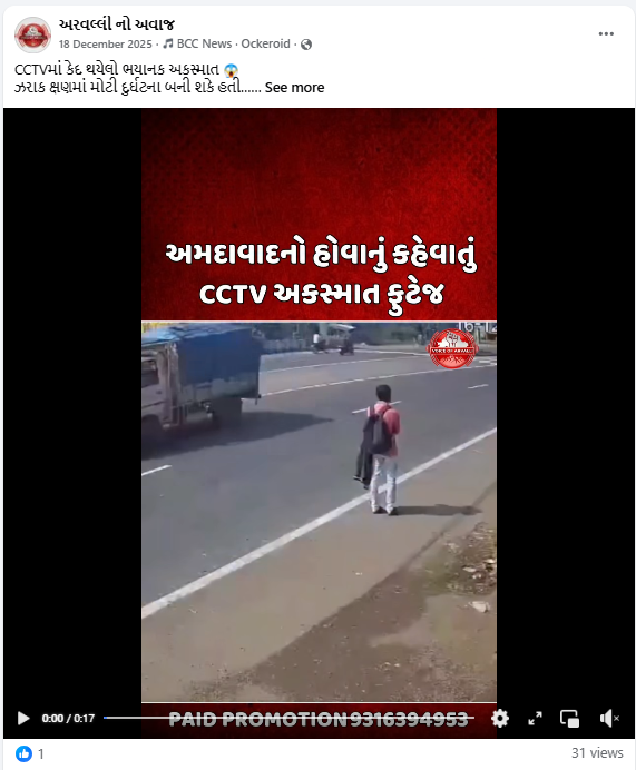સોશિયલ મીડિયા યુઝર્સ દ્વારા તારીખ 18 ડિસેમ્બર 2025ના એક પોસ્ટ શેર કરવામાં આવી હતી. આ પોસ્ટમાં દાવો કરવામાં આવ્યો હતો કે, “રોડ પર ભયંકર અકસ્માતનો આ વીડિયો ગુજરાતના અદમદાવાદ શહેરનો છે.”