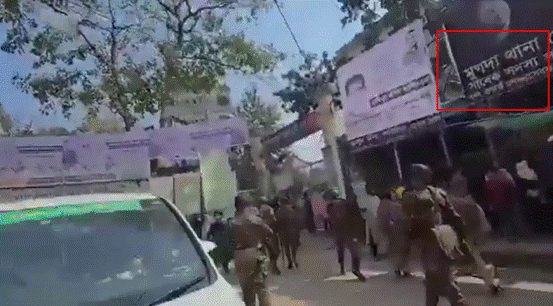 અમારી વધુ તપાસમાં અમે વાયરલ વીડિયોનું બારીકાઈથી વિશ્લેષણ કર્યા પછી, અમને એક વાહન પર “બાંગ્લાદેશ આર્મી” લખેલું દેખાયું. એક દૃશ્યમાન સાઇનબોર્ડ પરના લખાણનો અનુવાદ બાંગ્લાદેશના ઢાકામાં સ્થિત “મુગદા પોલીસ સ્ટેશન” એવો થાય છે. અમે આ ચોક્કસ સ્થાનનું ભૌગોલિક સ્થાન પણ નક્કી કર્યું અને પુષ્ટિ કરી કે આસપાસનો વિસ્તાર વાયરલ વીડિયોમાં બતાવેલ સ્થાન સાથે મેળ ખાય છે.