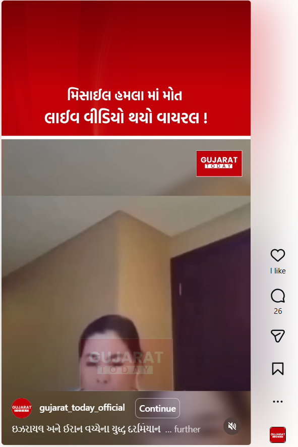 25 સેકન્ડ લાંબા વીડિયોમાં, એક યુવતી લાઇવ સ્ટ્રીમિંગ ચાલુ કરતી અને કેમેરા સાથે વાત કરતી જોઈ શકાય છે. અચાનક, એક અવાજ સંભળાય છે અને યુવતી ઉભી થાય છે. વીડિયોમાં પછી વિસ્ફોટ દેખાય છે અને લાઇવ સ્ટ્રીમિંગ સમાપ્ત થાય છે. વીડિયો શેર કરનારા યુઝર્સએ દાવો કર્યો છે કે, “આ વીડિયો તાજેતરમાં દુબઈમાં શૂટ કરવામાં આવ્યો હતો અને તેને ઇરાનના હુમલાઓ સાથે જોડ્યો છે.”