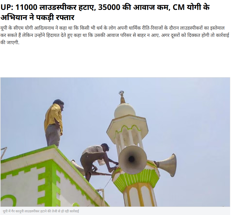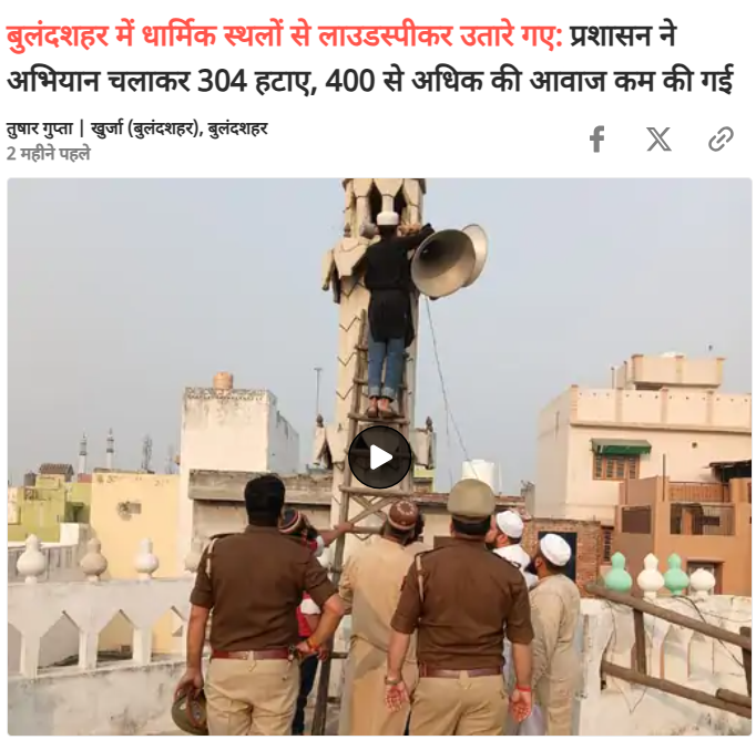 ઉપરોક્ત પરિણામો પરથી અમને દૈનિક ભાસ્કરનો એક અહેવાલ પ્રાપ્ત થયો હતો. જેની સાથે માહિતી આપવામાં આવી હતી કે, “બુલંદશહેરમાં ધાર્મિક સ્થળો પરથી લાઉડસ્પીકરો દૂર કરવામાં આવ્યા, વહીવટીતંત્રે ઝુંબેશ શરૂ કરી અને 304 દૂર કર્યા, 400 થી વધુનું વોલ્યુમ ઘટાડી દેવામાં આવ્યું.”