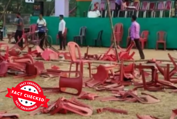 સભાના ગ્રાઉન્ડમાં તૂટેલી ખુરશીઓની આ તસ્વીર હાલના બિહાર ચૂંટણી પ્રચાર દરમિયાનની નથી… જાણો શું છે સત્ય….