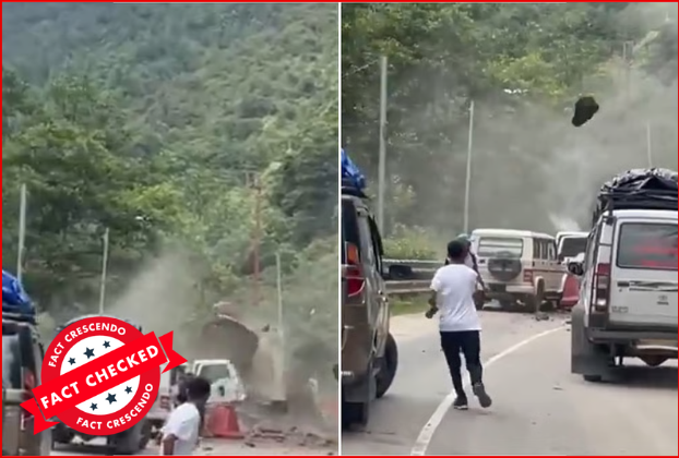 તાજેતરમાં સોશિયલ મીડિયા પર પહાડ પરથી થઈ રહેલા ભૂસ્ખલનનો એક વીડિયો વાયરલ થઈ રહ્યો છે જેની સાથે એવો દાવો કરવામાં આવી રહ્યો છે કે, દહેરાદૂન-મસૂરી હાઈવે ખાતે ભારે વરસાદને કારણે ભૂસ્ખલન થયું તેનો આ વીડિયો છે. પરંતુ ફેક્ટ ક્રેસેન્ડોની પડતાલમાં આ દાવો ખોટો અને પાયાવિહોણો હોવાનું સાબિત થાય છે કારણ કે, પોસ્ટમાં પહાડ પરથી થઈ […]