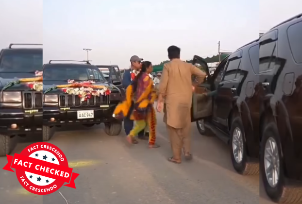 સોશિયલ મીડિયા પર એક વીડિયો વાયરલ થઈ રહ્યો છે, જેમાં દાવો કરવામાં આવી રહ્યો છે કે પાકિસ્તાનમાં એક નવપરિણીત હિન્દુ મહિલાનું અપહરણ કરવામાં આવ્યું છે. ફૂટેજમાં માળા પહેરેલી એક મહિલાને શણગારેલી કારમાંથી બળજબરીથી બીજા વાહનમાં લઈ જવામાં આવી રહી છે. વીડિયો શેર કરનારા યુઝર્સ દ્વારા દાવો કરવામાં આવ્યો છે કે, “પાકિસ્તાનમાં હિન્દુ નવપરણિત મહિલાના અપહરણની આ વાસ્તવિક ઘટના છે.”